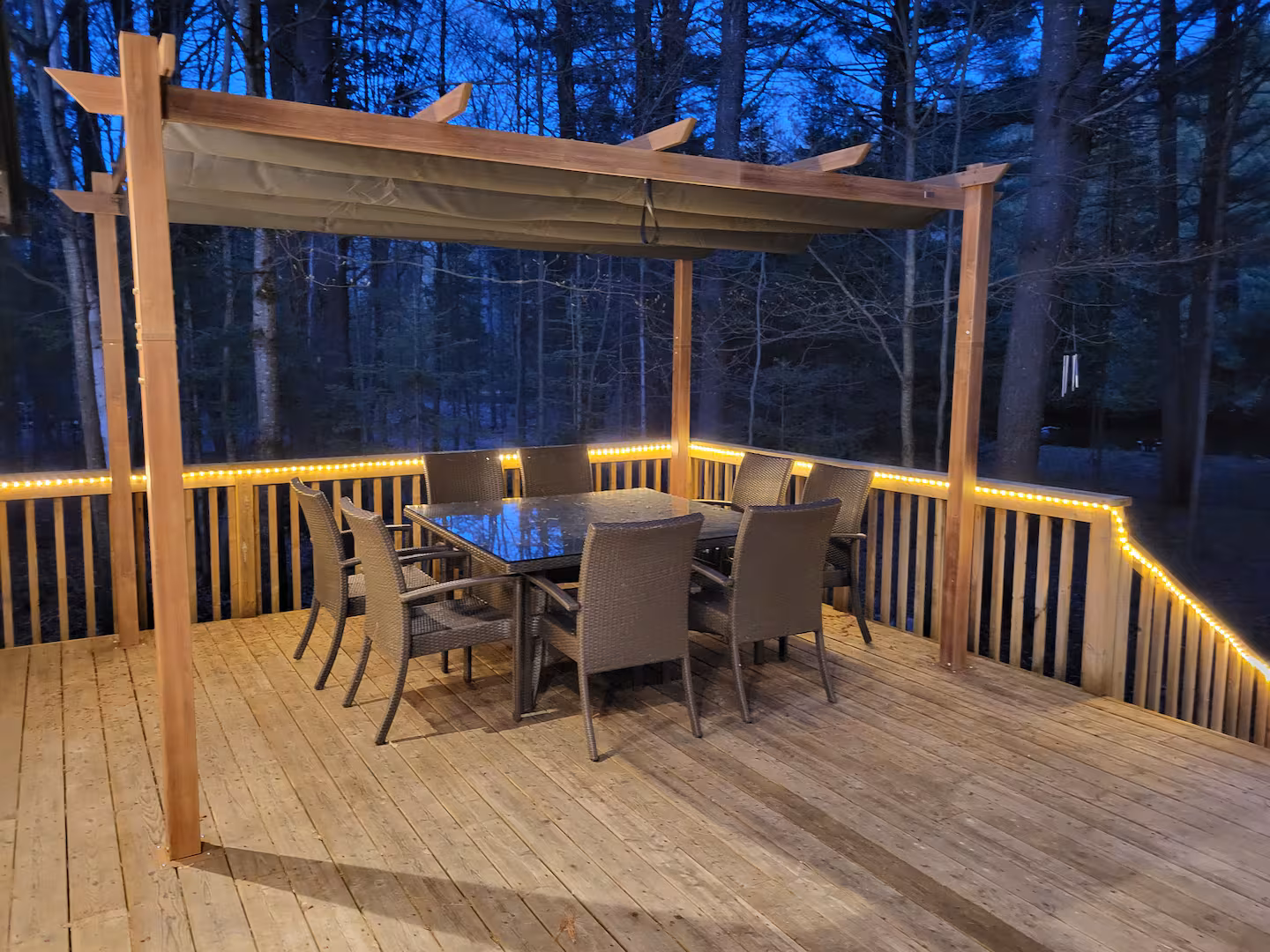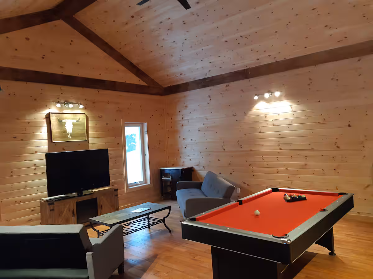 - The Entertainment Guesthouse: A massive 2-bedroom suite that doubles as a fun zone. Includes a pool table, ping-pong, a large TV, and seasonal washroom facilities. Fully heated for winter use and air-conditioned for summer comfort.